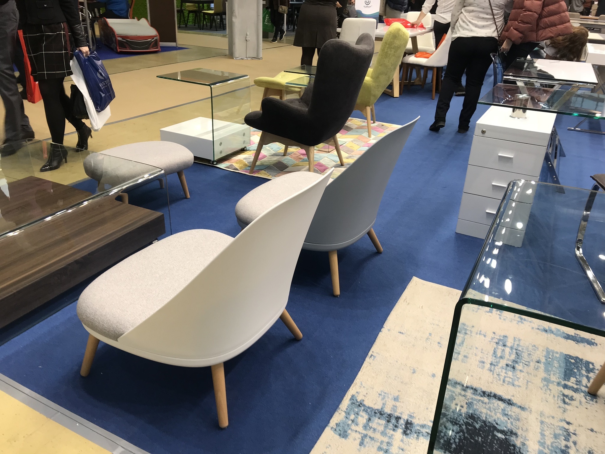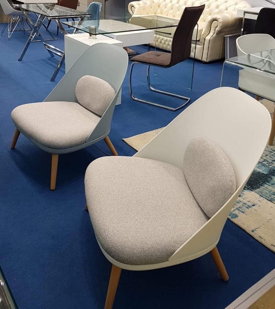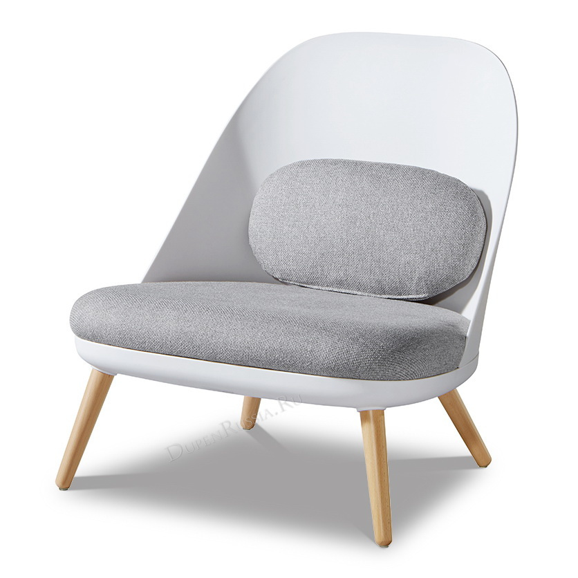 Белое пластиковое кресло с сидением из ткани A652-14. Пластик ABS.