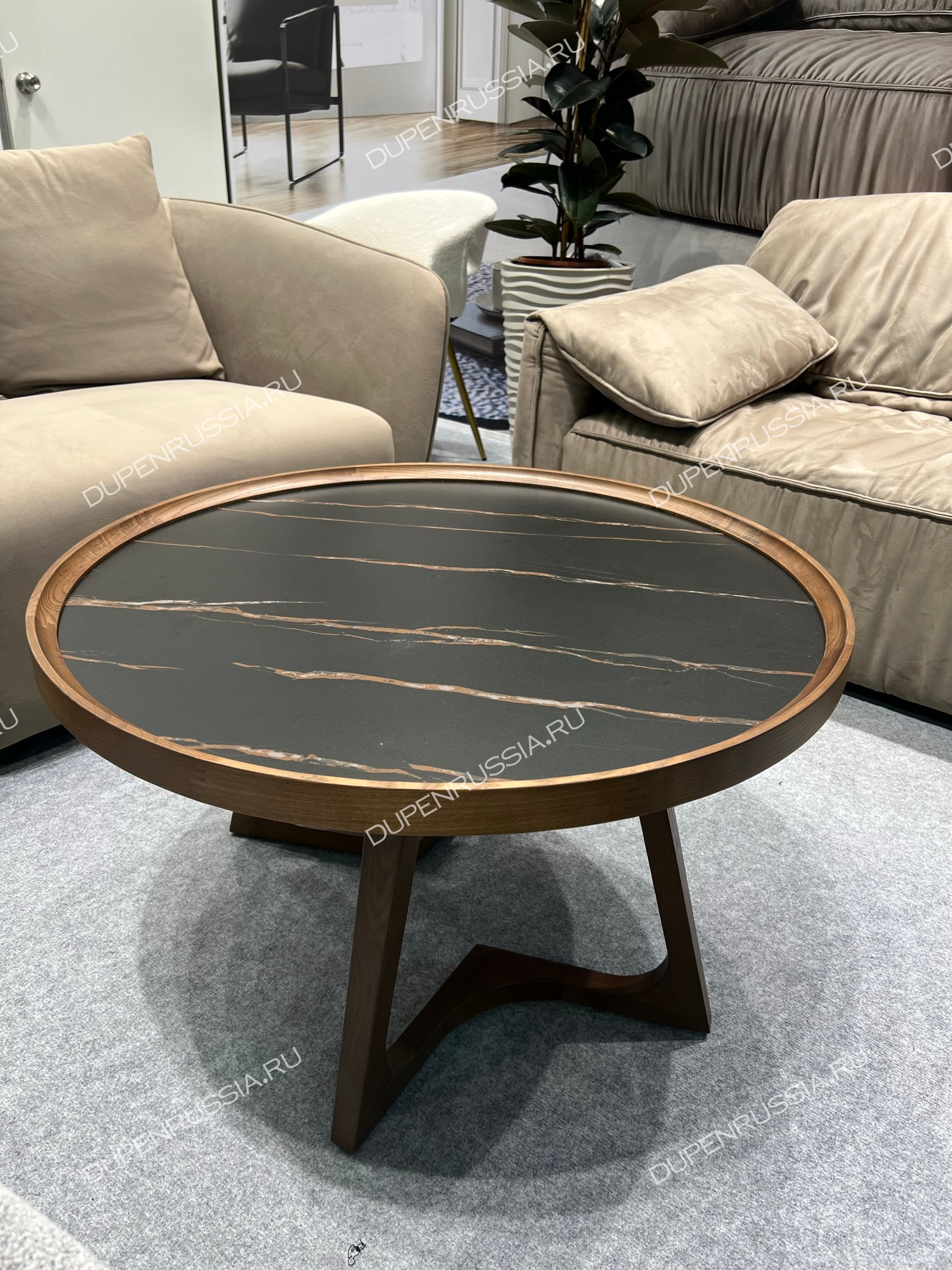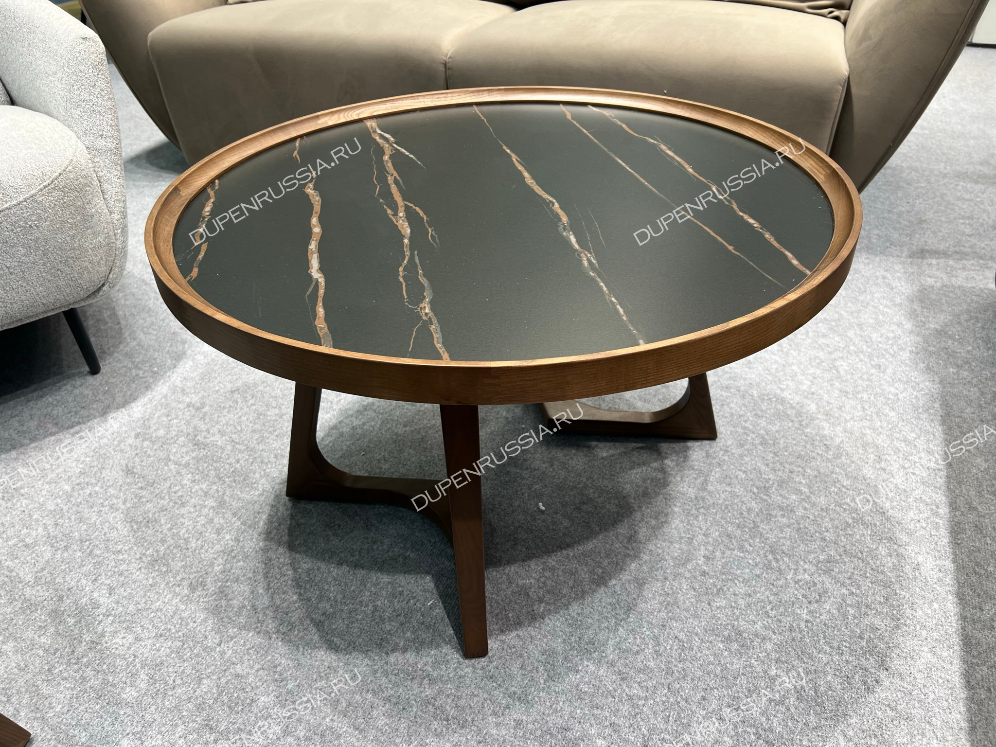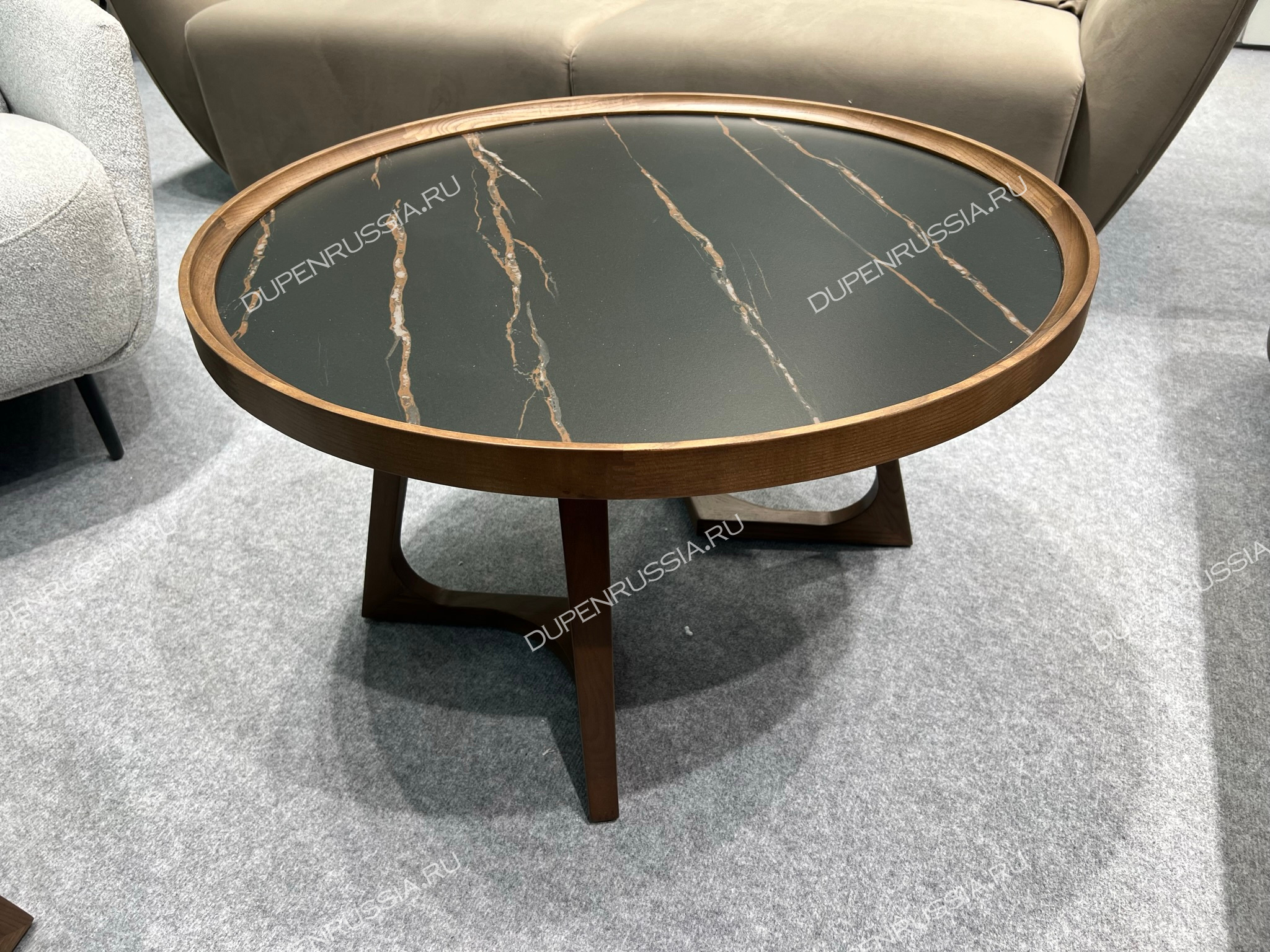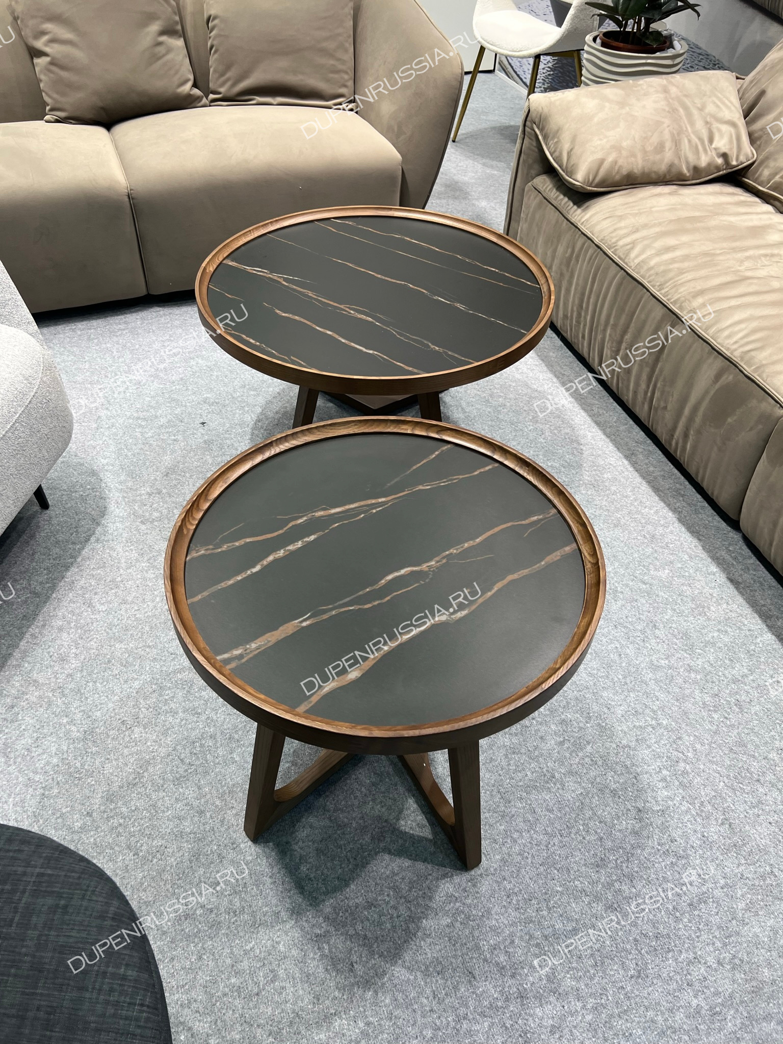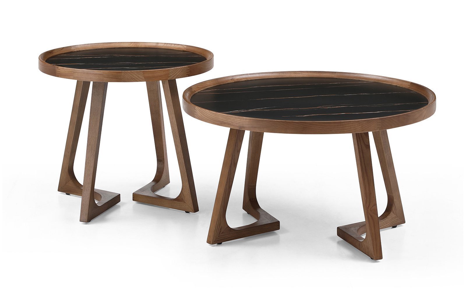 Уютные журнальные столики CT6082 и CT3059 выполнены из натурального массива дерева в цвете орех. Текстура дерева приятно гармонирует с гладкостью керамической столешницы темного цвета, а форма изящных ножек делает стол невероятно устойчивым.